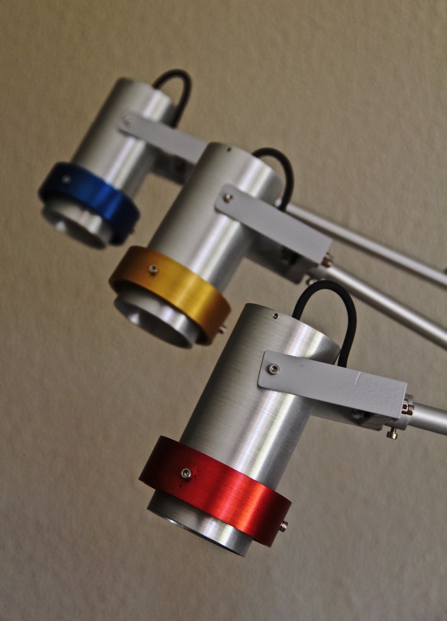 - Beam angle: 60 degree - Adjustment: Tilt and height - Finish: Brushed Aluminium anodized with Quartz Stone base - Switch: In-Line switch - Dimension: Height adjustable from 250 to 550 mm - Wall Power Supply - 12Watt total consumption - Available in three colours: Red / Blue / Gold - Packed Dimension: 215 x 170x 530 mm - Shipping Weight: 3.7 kg R 2950.00 |